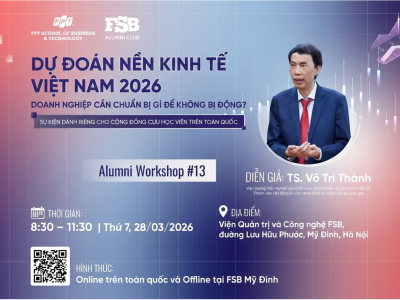 Mở đầu năm 2026, Viện Quản trị & Công nghệ FSB trân trọng tổ chức FSB Alumni Workshop #13 với chủ đề: “Dự đoán nền kinh tế Việt Nam 2026: Doanh nghiệp cần chuẩn bị gì để không bị động?”. Chương trình có sự tham gia chia sẻ của TS. Võ Trí Thành – chuyên …