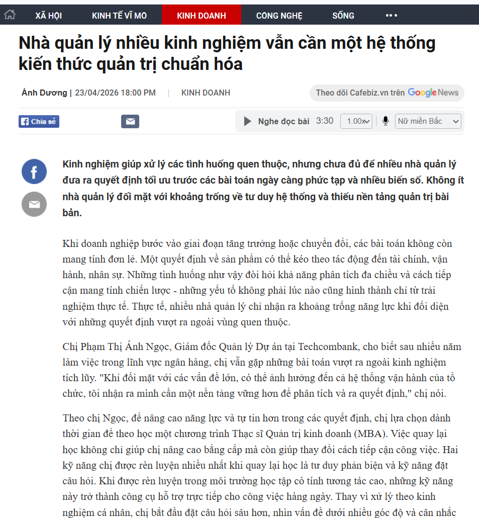 Kinh nghiệm giúp xử lý các tình huống quen thuộc, nhưng chưa đủ để nhiều nhà quản lý đưa ra quyết định tối ưu trước các bài toán ngày càng phức tạp và nhiều biến số. Không ít nhà quản lý đối mặt với khoảng trống về tư duy hệ thống và thiếu nền tảng quản trị bài bản.
