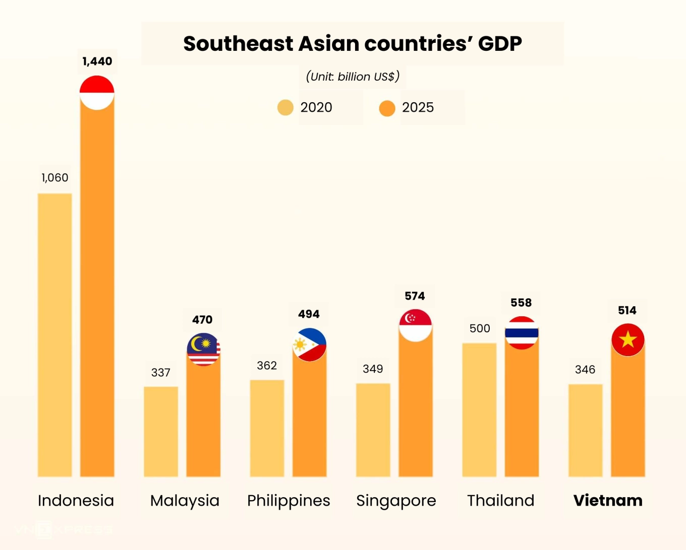 Vietnam’s economy compared with some Southeast Asian peers in 2025. Graphics by VnExpress/Anh Tu